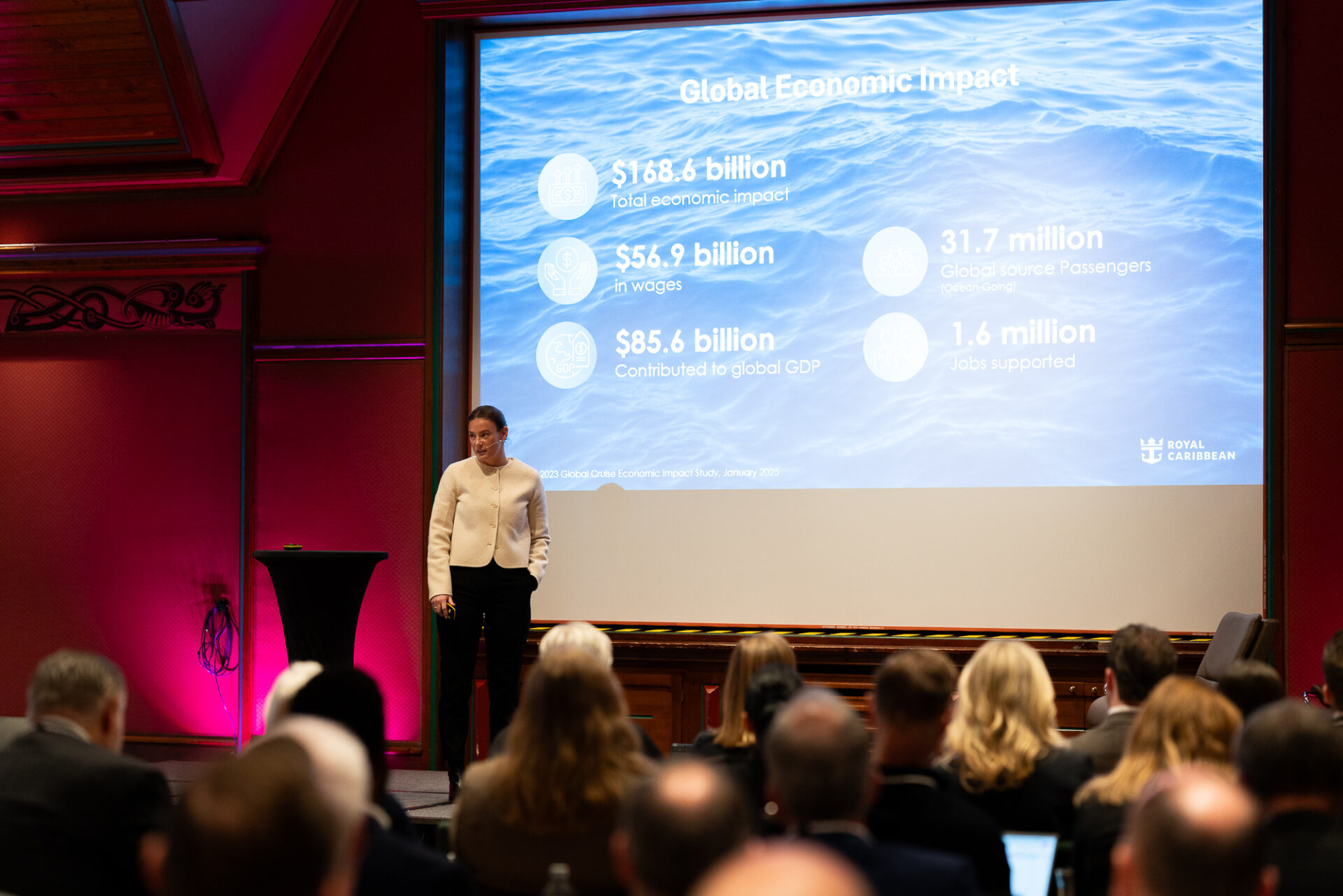 Første dag ble rundet av med at Sidsel Norvik fra Nor-Shipping presenterte planer og aktiviteter for Nor-Shipping 2027, før vi tradisjon tro avsluttet med Nor-Shipping drinks.