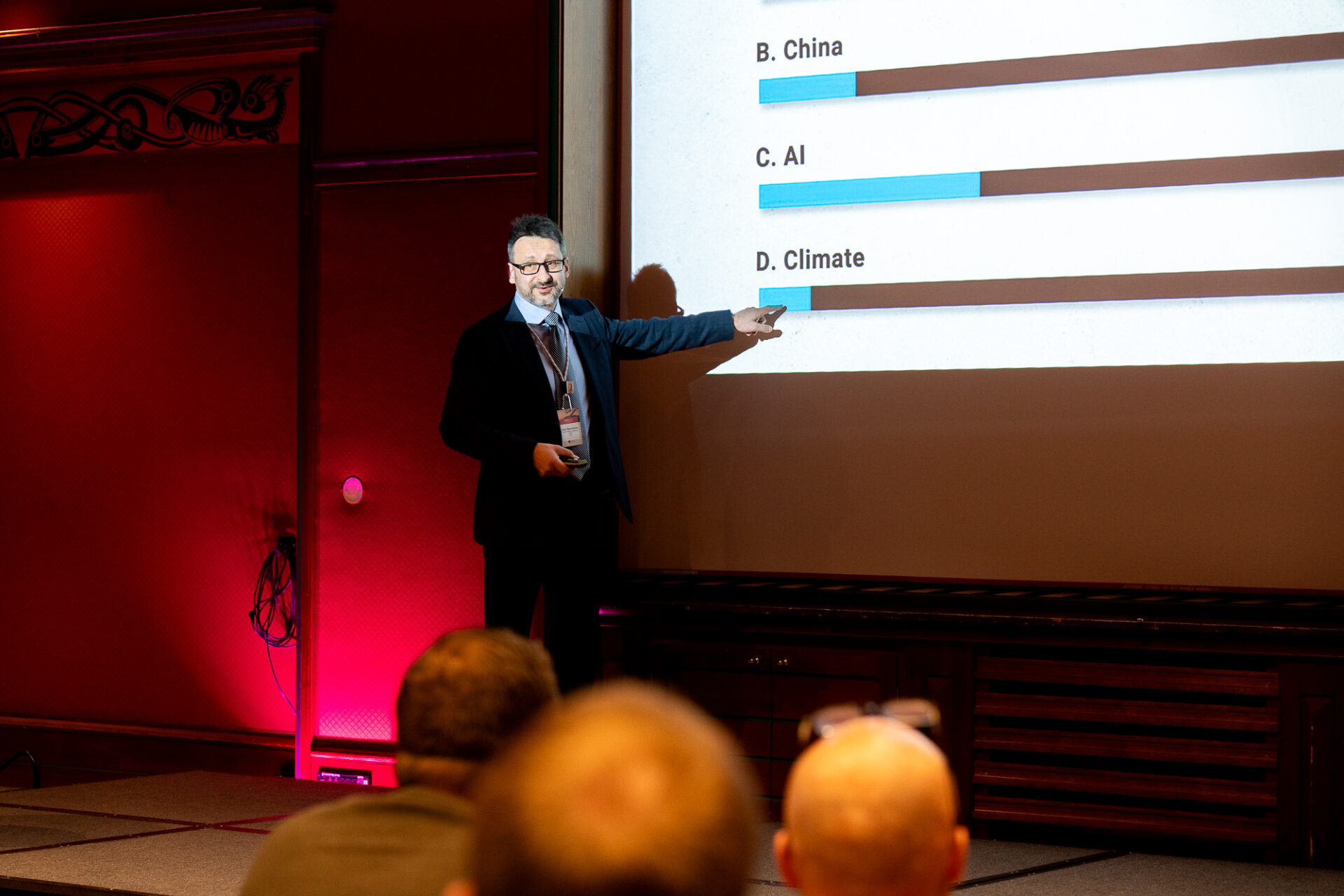 Programmet på første dag besto av fire bolker med hvert sitt tema. Den første bolken hadde temaet «markeder» og vi så på trender og spesifikke markeder som er interessante for utstyrleverandørene. Til tross for urolige tider loset Jakub Walenkiewicz fra DNV oss trygt gjennom trendene i markedet. Her fikk vi en grundig oversikt over hvordan verdenssituasjonen påvirker markedet nå, og hvilke faktorer som kan påvirke markedet fremover. Vegard Vollsæter fra Clarksons Offshore & Renewables presenterte fremtidige analyser og tall for offshore markedet fremover. Vilde T. Coward fra Royal Caribbean Group avsluttet bolken med å snakke om cruisemarkedet, og hvordan de er «early adopters» av nye teknologier og investeringer i innovasjon.