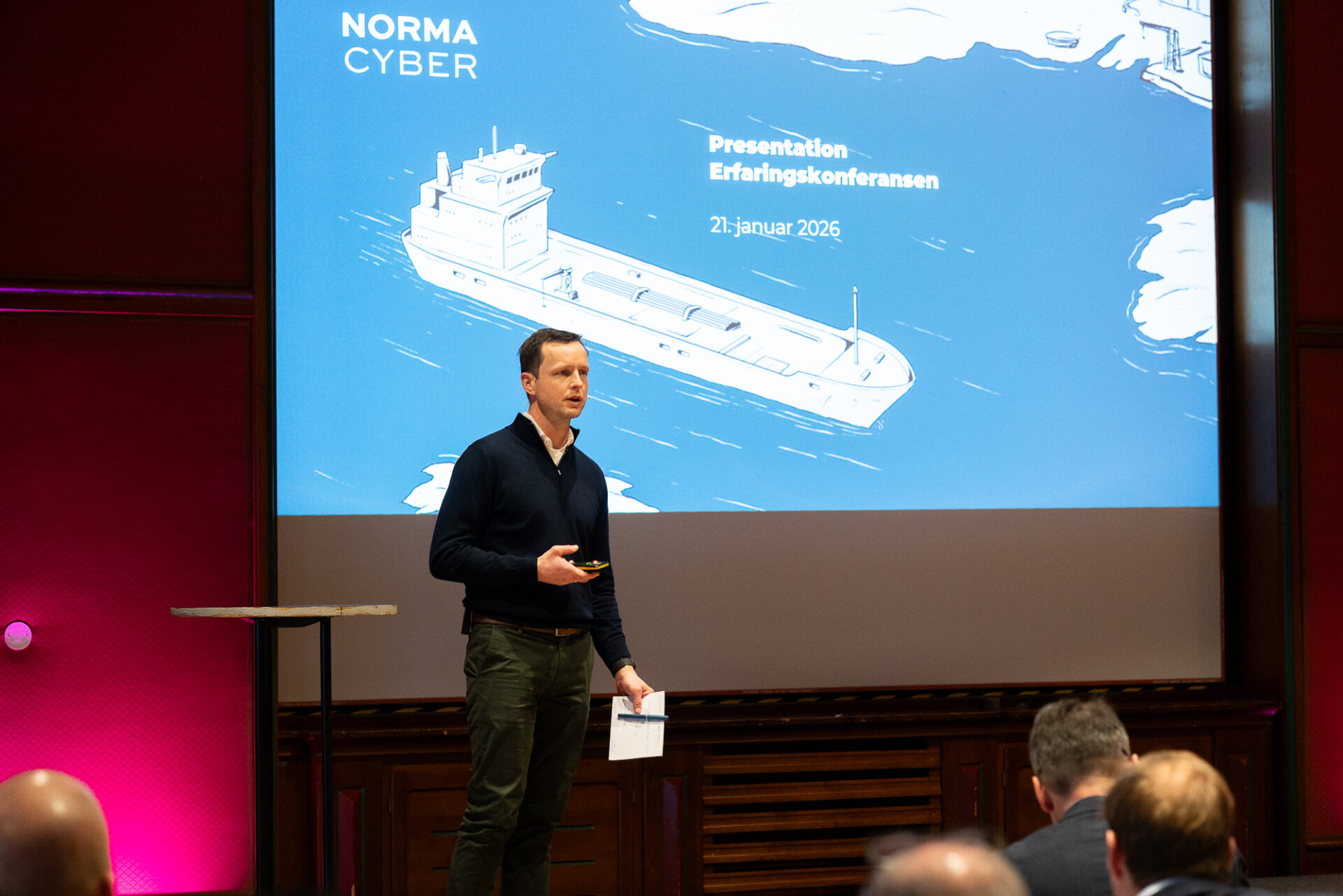 Programmet på den andre dagen startet med en introduksjon om cybersikkerhet og trussellandskapet for maritime virksomheter, presentert av Lars Benjamin Vold fra NORMA Cyber. Her fikk vi innsikt i hva slags digitale trusler den maritime næringen må forholde seg til, og hvordan bedriftene best kan sikre seg mot disse truslene. Videre presenterte Anne Marie Brady fra Innovasjon Norge «Made in Norway-merket», og hvordan det kan brukes til å styrke merkevarer.