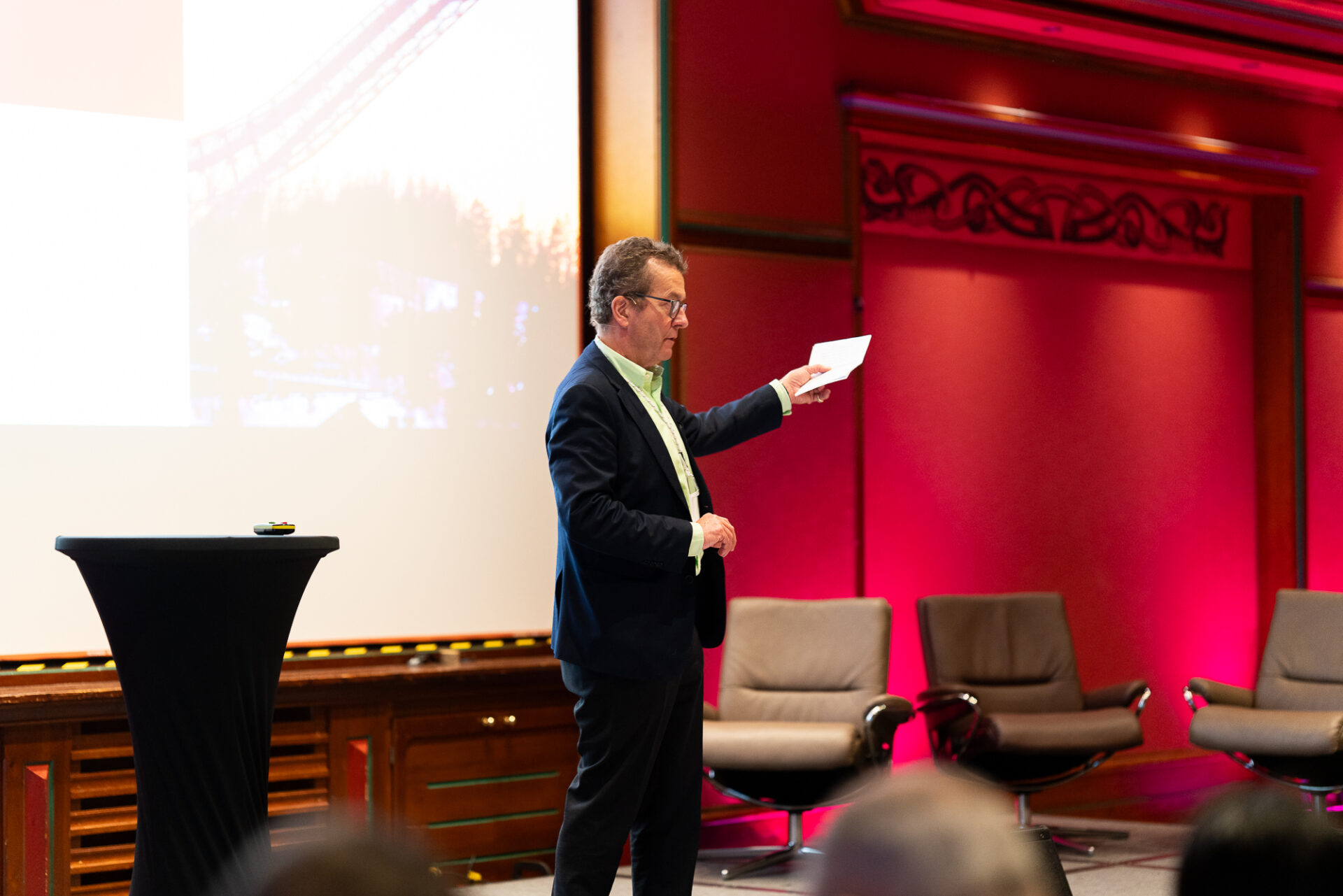 Etter at NMEs CEO Erlend Prytz hadde ønsket velkommen, holdt statssekretær i Nærings- og fiskeridepartementet, Even Tronstad Sagebakken åpningstalen. Med det var Erfaringskonferansen 2026 offisielt åpnet.