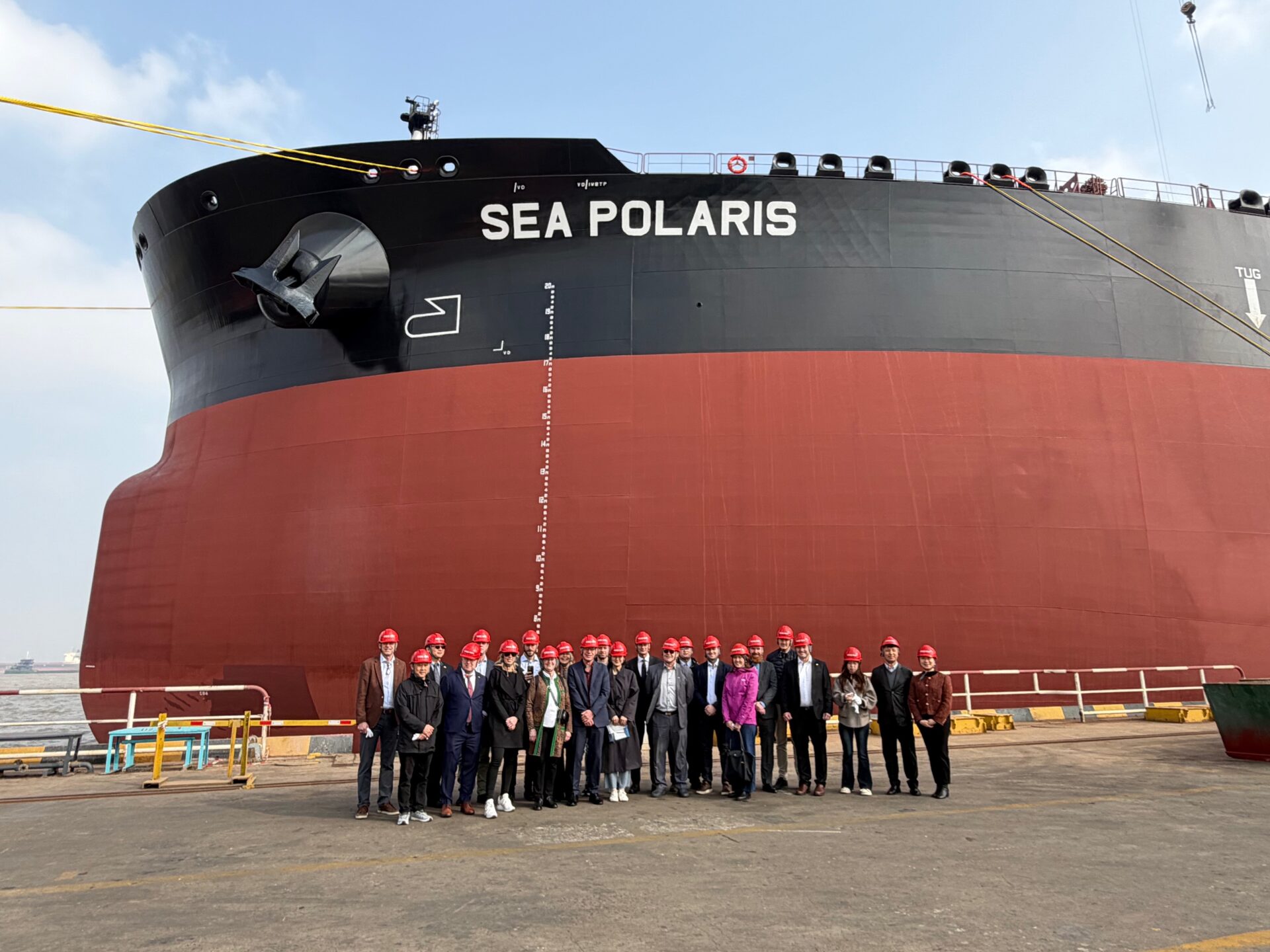 Ahead of the exhibition, NME organised a yard visit to Waigaoqiao Shipyard in Shanghai. The visit included a guided tour of the exhibition centre, a bus tour of the yard and a meeting with the shipyard’s management team. As part of the visit, the delegation was invited aboard Frontline’s newest vessel. the Sea Polaris, scheduled for delivery the same day.